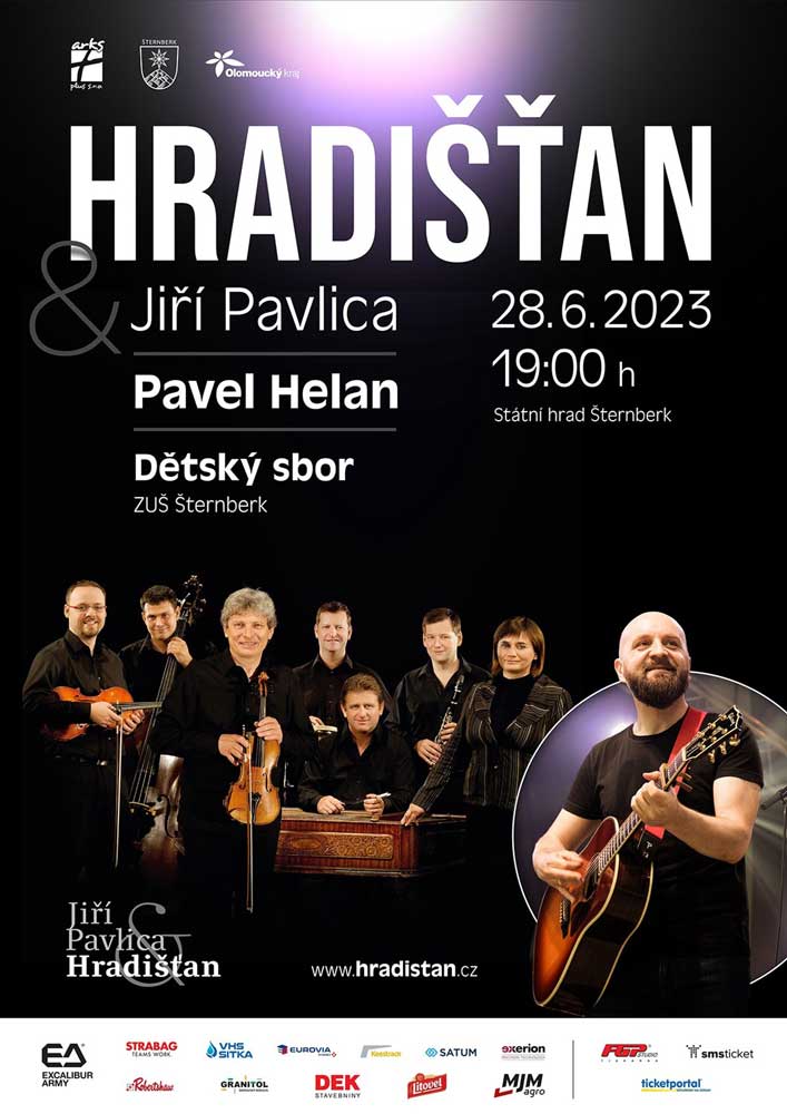 Přijďte si s námi užít nezapomenutelný zážitek z koncertu HRADIŠŤAN & Jiří Pavlica s hostem Pavlem Helanem v doprovodu dětského sboru Základní umělecké školy Šternberk. Koncert se bude konat v krásném areálu Státního hradu ve Šternberku.