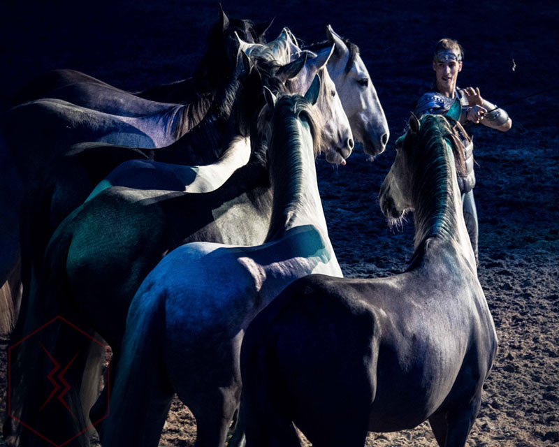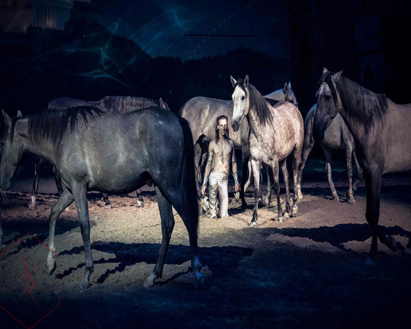 Hluboce působivý příběh o zrození člověka a jeho cestě k naplnění podstaty života. Diváci se mohou těšit na děj plný překvapivých momentů, vrcholných kaskadérských výkonů, náročných akrobatických prvků a jedinečných světelných scén. Na vytvoření této úchvatné podívané se pracovalo léta. Je ukázkou spolupráce lidí a koní na světové úrovni.