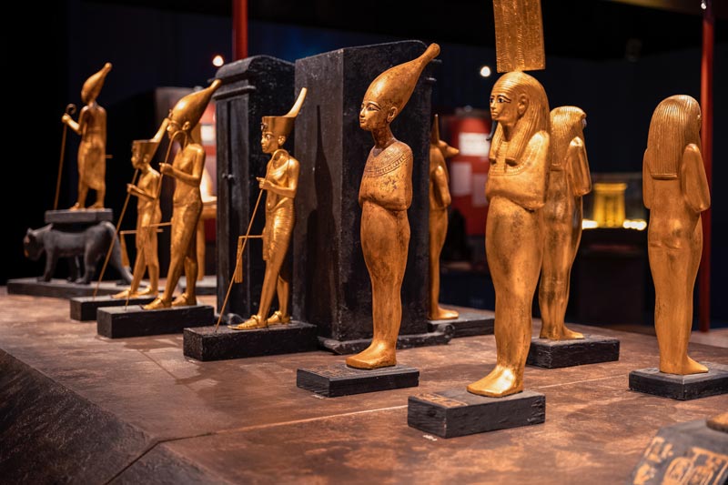 Více než 1000 artefaktů včetně posvátných soch, šperků, amuletů a rituálních předmětů ukazuje nepředstavitelné bohatství, které mělo faraonovi zajistit bezpečnou cestu do posmrtného života. Mezi nejvýznamnější exponáty patří: