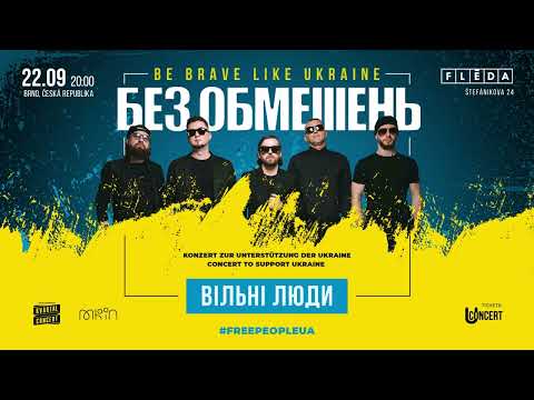 BEZ OBMEŽEŇ - BE BRAVE LIKE UKRAINE koncert na podporu Ukrajiny Již 18. září v Praze a 22. září v Brně se uskuteční benefiční koncert ukrajinské skupiny "BEZ OBMEŽEŇ". Toto je již druhá část velkého koncertního turné na podporu Ukrajiny!
