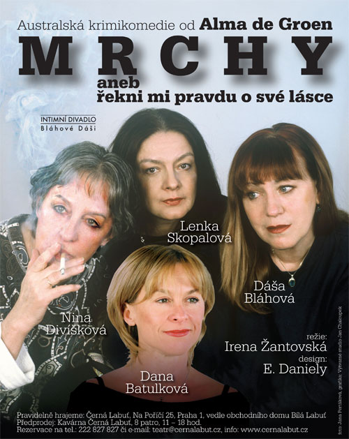 Slovo mrcha je víceznačné. Samozřejmě označuje ženu, která jde tvrdě a bez obalu za svým cílem. To čtyři hrdinky této hry jistě splňují. Mrcha ale také může být bytost politováníhodná, oběť vlastních nebo cizích intrik, s nimiž nedokázala sehrát vítězný souboj. V každé „mrše“ je nebo může být zranitelná křehkost, která má převlek mrchy jako krunýř před vnějším světem. A konečně – jste-li mrcha, je často dáno situací: jednou vy obelstíte druhou, podruhé ona vás. Obě dvě ale prohrajete, protože jste paradoxně jen velmi malé mrchy. Někde za zády se vám směje váš osud, a ten umí být někdy fakt pěkná mrcha!