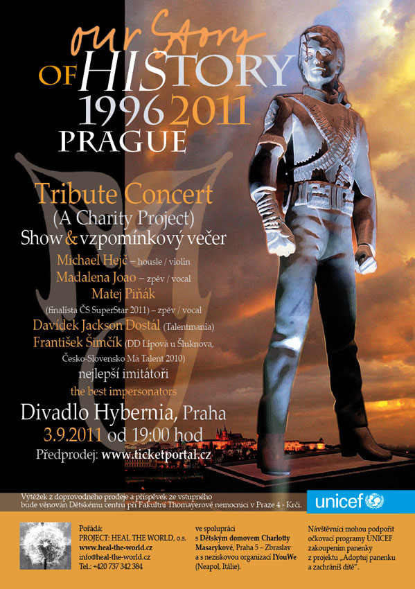 V souladu s významnou humanitární činností Michaela Jacksona je možnost se v rámci plánované události kromě zábavy účastnit pomoci potřebným, a to několika způsoby. Již v sobotu dopoledne a následně v neděli bude možné navštívit Dětský domov Charlotty Masarykové na Zbraslavi, kam tehdy Michael zavítal. Při té příležitosti obdarujeme děti potřebnými dárky (jsou vítané např. kreativní hračky, kreslicí a další výtvarné potřeby, oděvy, kosmetika, pochutiny vhodné pro děti ve věku od 1,5 - max. 6 let). Z části vstupného a z výtěžku doprovodného prodeje přispějeme na veřejnou sbírku ve prospěch Dětského centra při Fakultní Thomayerově nemocnici v Praze 4 - Krči. Tento jediný kojenecký ústav pro Prahu se totiž potýká s vážnými finančními problémy a bez intenzivní pomoci sponzorů a dobrovolných dárců hrozí, že bude nucen omezit rozsah své péče. Návštěvníci koncertu se mohou zapojit do sbírky věcných darů pro děti z dětských domovů.