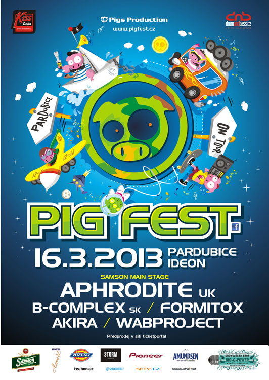Zahraniční hosté i místní ostřílení borci Pig Fest on tour vám přinese celou řadu známých a kvalitních drumandbassových DJs a projektů. Chcete malou ochutnávku? Zahraje vám například v naší kotlině tolik oblíbený britský zkušený matador Aphrodite, slovenský mág se schopností vytvářet perfektní taneční pecky B-Complex, z našich borců pak přivezeme zkušeného DJ Akiru, nebo místního Formitoxe, který má bohaté zkušenosti jak s hraním, tak s produkcí vlastních akcí. Z živých projektů musíme Wabproject z Hradce Králové, který se skládá ze dvou DJs a jednoho MC a jistě odvede také výbornou show. Oproti plzeňské akci je ta východočeská jednodenní, kdy bude celý tento den věnovat drumandbassu. Věříme, že i v tomto regionu se Pig Fest usadí a že naše fanoušky potěší. Těšíme se již v březnu na shledanou v Ideonu! Love, peace, pig…